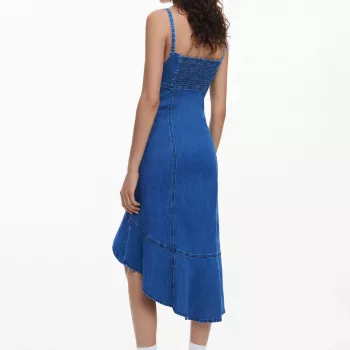 Desigual Women's Blue V-Neck Cotton Blend Dress with Straps