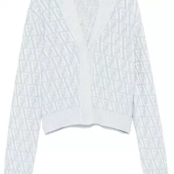 Fendi Silk Cardigan with Iconic FF Jacquard Weave – Elegant Two-Tone Design