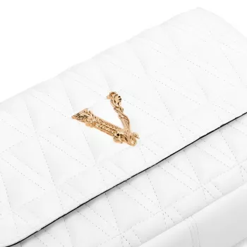 Versace White Crossbody Bag with Adjustable Strap and Pink Lining